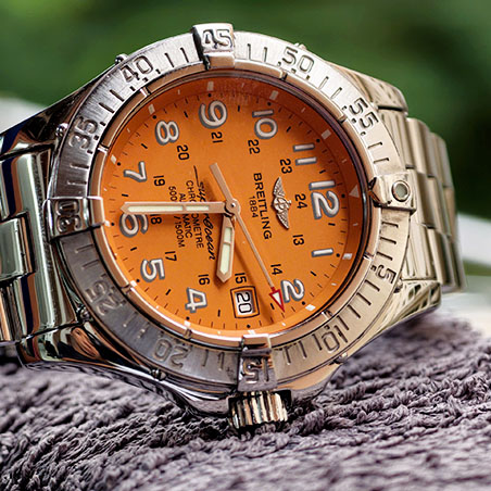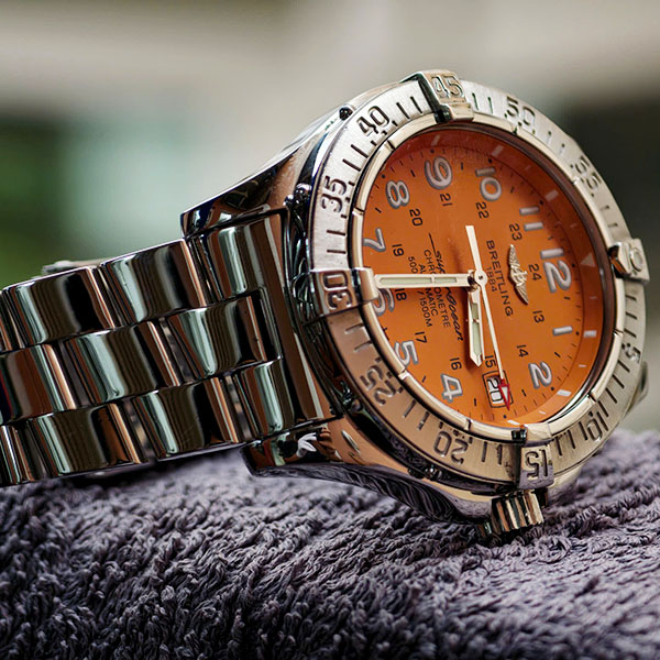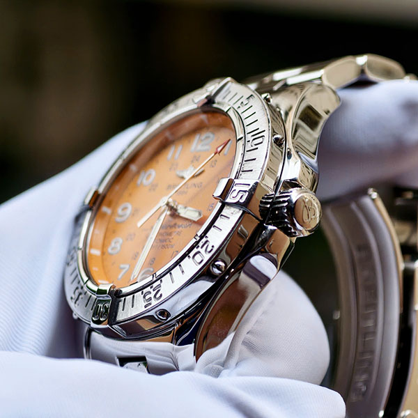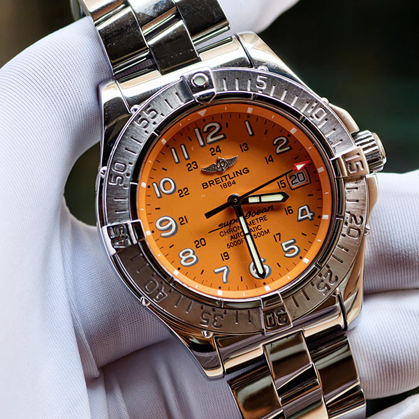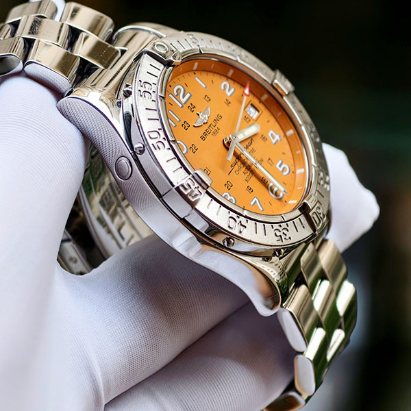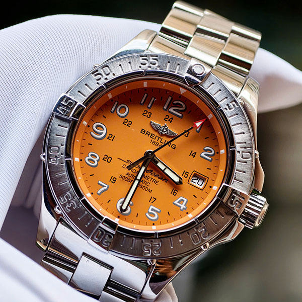 ✅ Giá: 37 triệu ✅ Size: 41mm ✅ Dial: Cam ✅ Thương hiệu: Breitling ✅ Loại máy: Automatic ✅ Xuất xứ: Thụy Sỹ ✅ Chống nước: 50 ATM