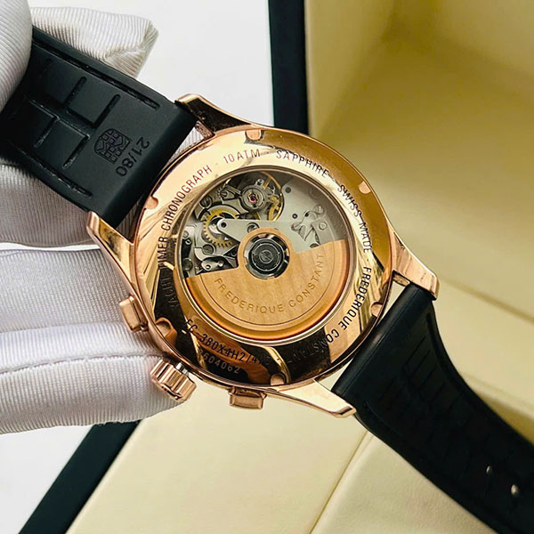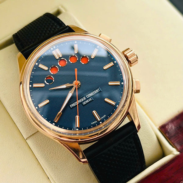 ✅ Điểm độc đáo của FC Regatta là cơ chế hiển thị Chronograph độc đáo và lạ mắt, được sử dụng để đếm ngược trong một cuộc đua thuyền. Cơ chế hiển thị Chronograph độc đáo và lạ mắt 5 chấm tròn trên mặt đồng hồ tương ứng với 5 phút bấm giờ, và đổi màu sau mỗi chu kì, có 3 chu kì tương ứng với 15 phút.