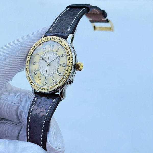 ✅ Cơ chế xoay bezel độc quyền để tính toán kinh độ và góc giờ, công cụ thực thụ cho phi công trước thời GPS